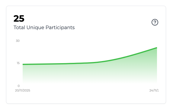 This chart shows how many unique users have participated in any run of a leaderboard over time. This is useful to understand how many of your users actually take part in leaderboards and how participant limits are affecting this.